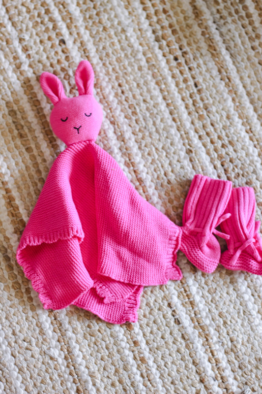ORGANIC COTTON BABY KNITTED BUNNY BLANKET & BOOTS SET