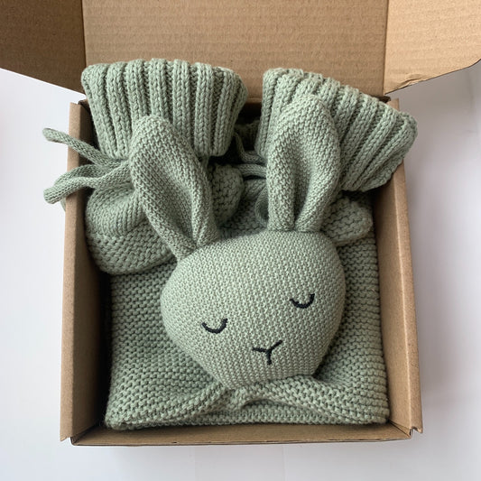 ORGANIC COTTON BABY KNITTED BUNNY BLANKET & BOOTS SET