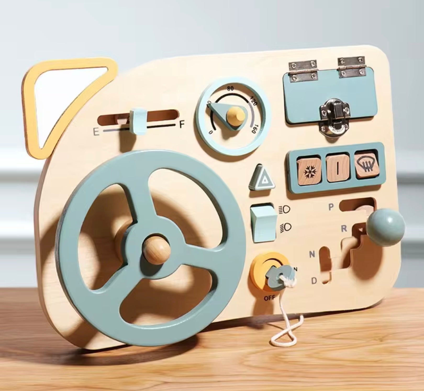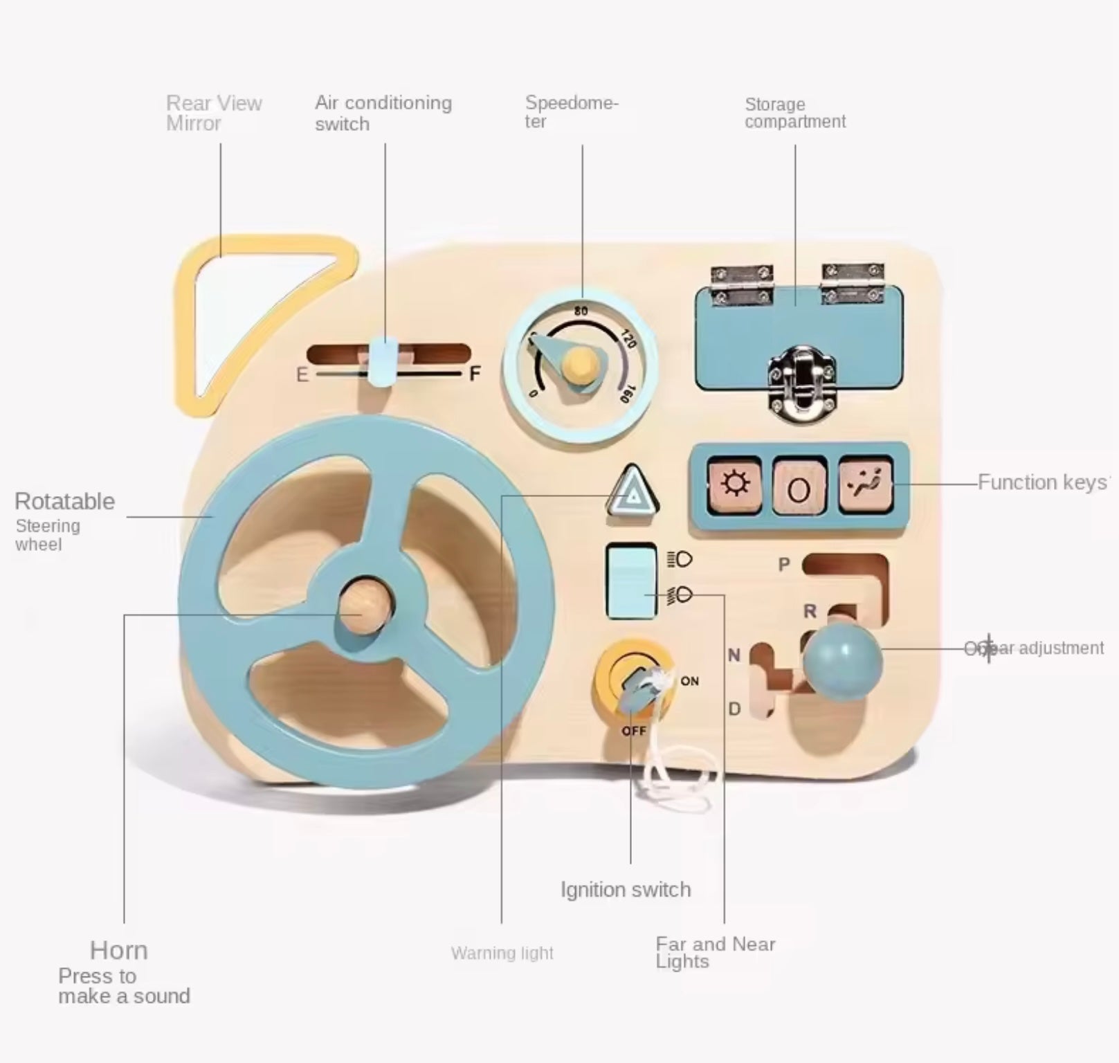 Encourage hands-on learning and independent exploration with our Montessori Wooden Educational Busy Board! Designed to support early developmental skills the Montessori way, this engaging sensory board introduces little learners to real-life tools and everyday motions — from zipping and latching to turning and sliding.
