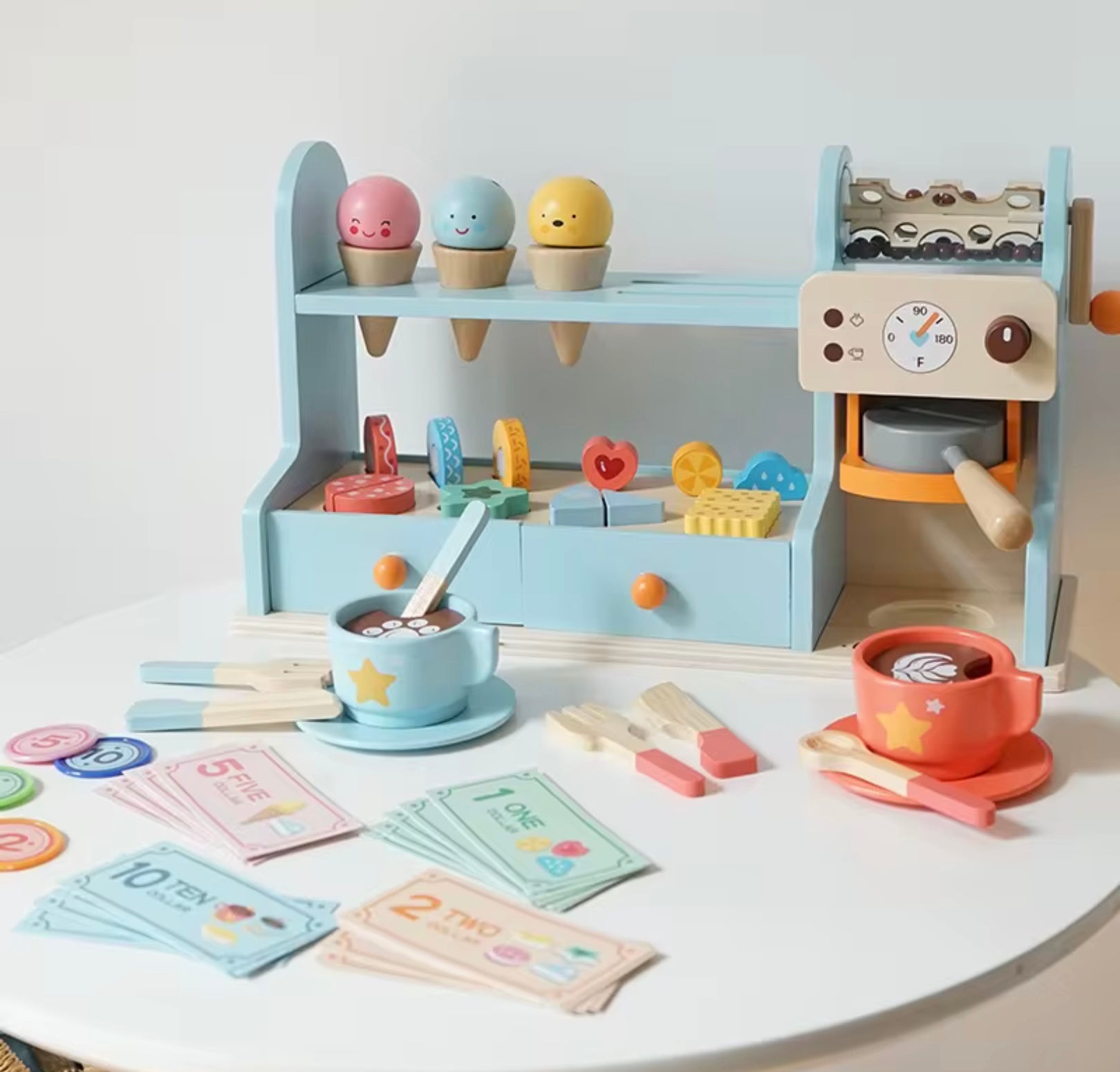 Montessori Wooden Play Coffee Shop & Ice cream Stand